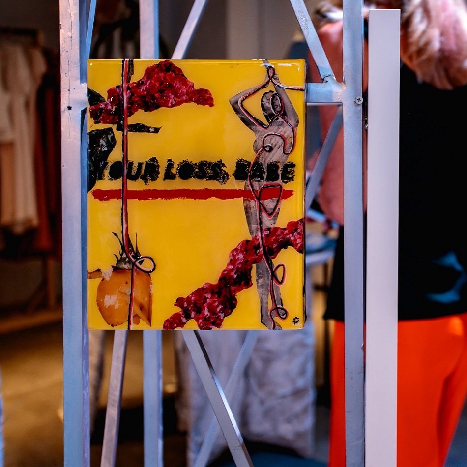 Miami based artist, Emma Fray, is a first-generation Canadian, with parents from France. After completing her degree in Applied Arts for Interior Design, she relocated to Miami Beach to pursue her passion for art and design. She uses her technical background to create pieces with computer-generated elements and blends them with her free hand to create bold compositions. Her art is presented in the form of mixed media paintings and wall installations. Emma’s art is fueled by social media, tabloids, and consumerism. She uses her pieces to investigate her role in society, as she struggles to reconcile flawed social structures and how they relate to one’s sexuality, gender and rebellion. Emma’s goal is to challenge the boundaries of the viewer by provoking them to face a vulgar reality, investigate themselves, and in turn practice radical empathy. She prompts viewers by using bold imagery, varied colors, contemplative words, and social categorizations, to create immersive compositions.