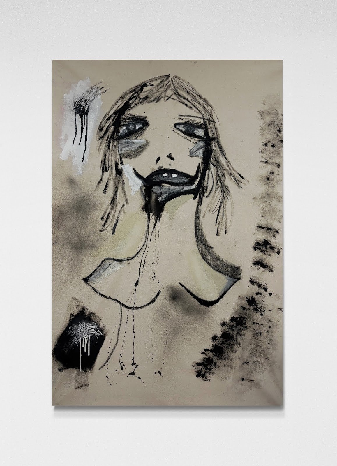 Spray-paint, charcoal, ink, pastel and acrylic on